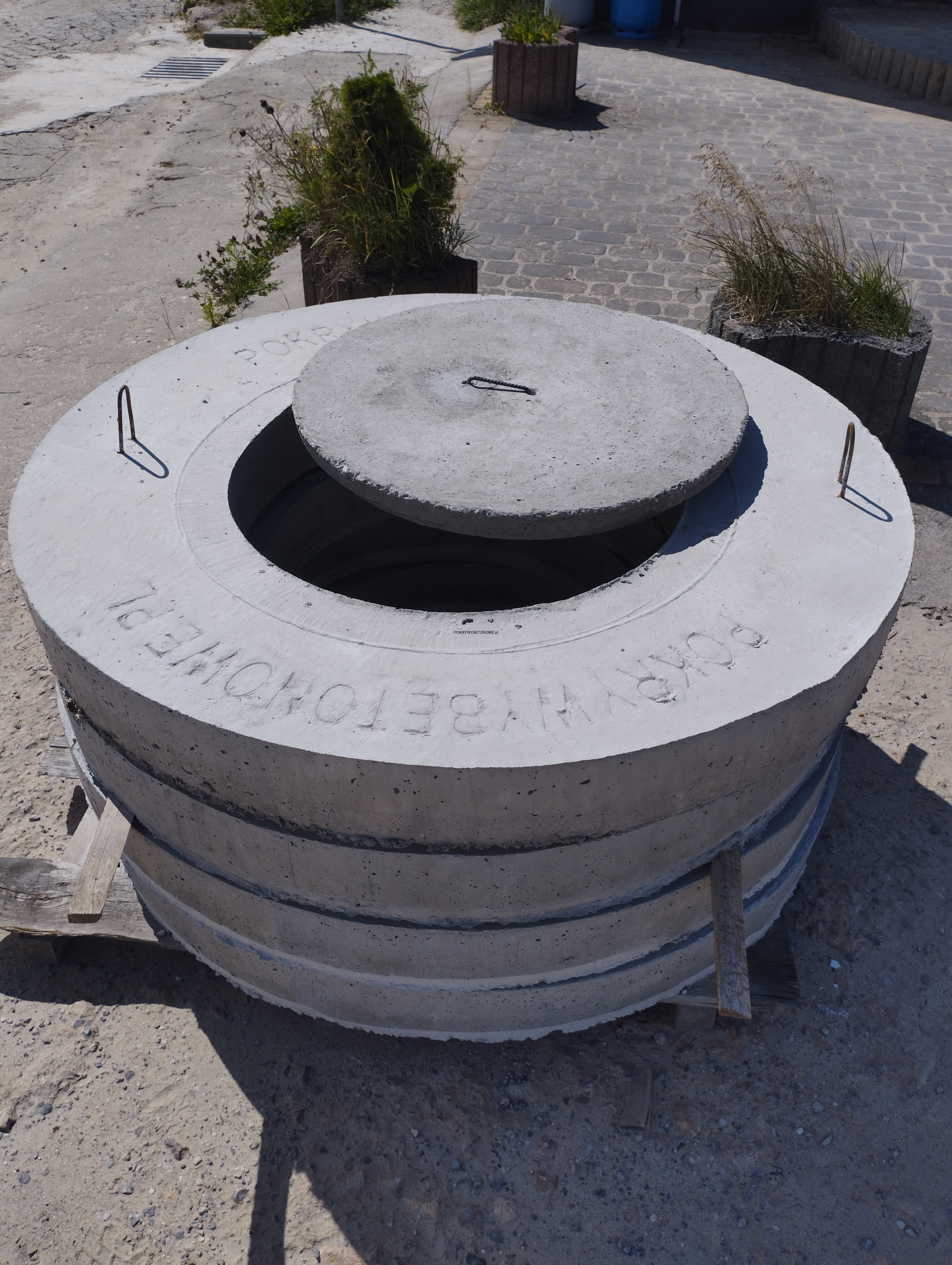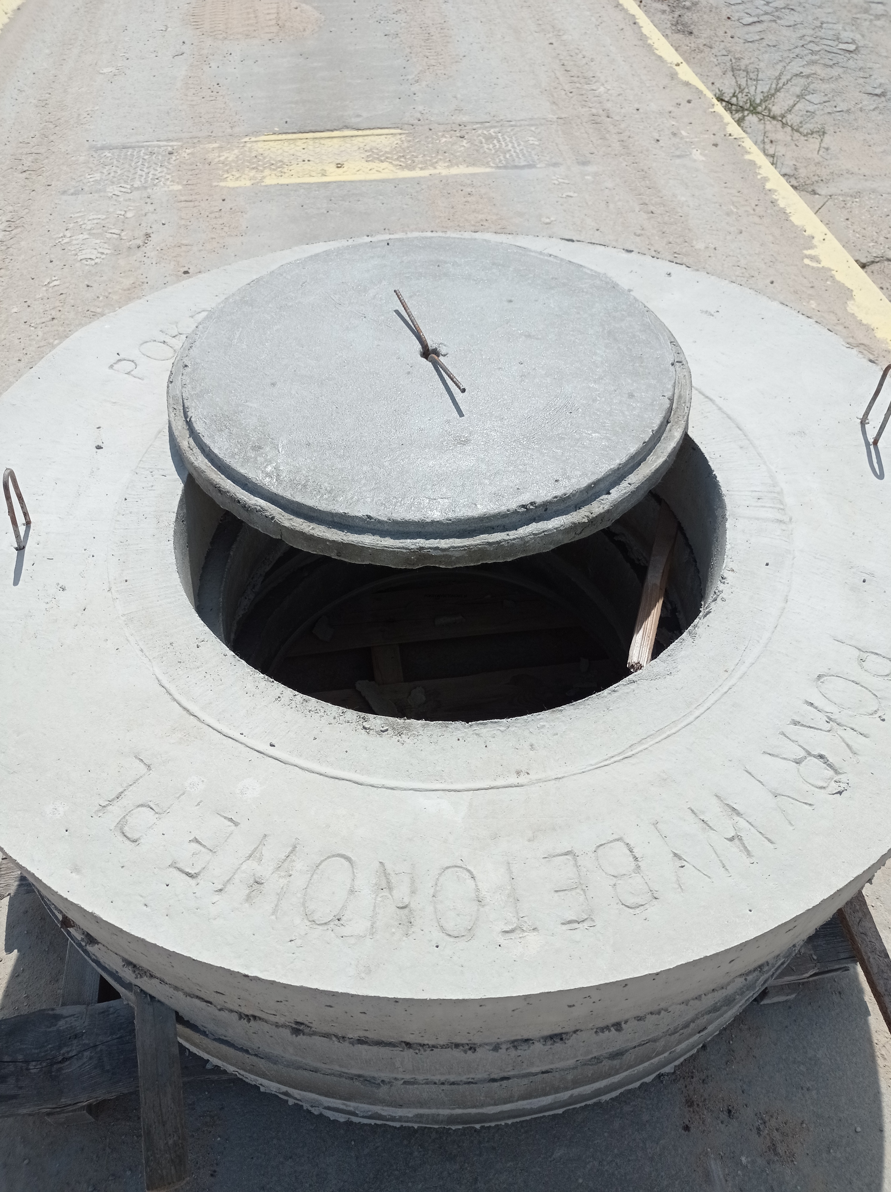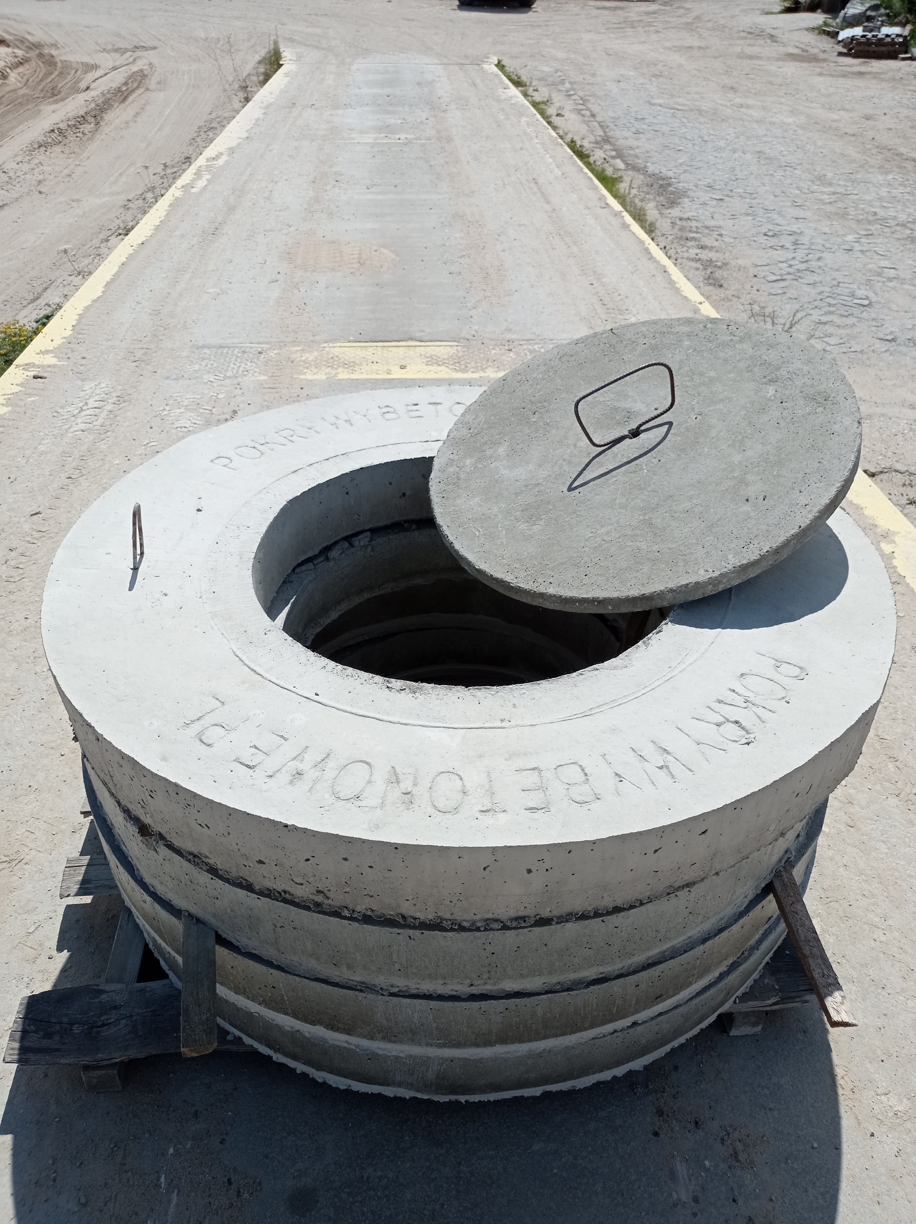 Pokrywa betonowa na studnię - z otworem na pompę, z włazem: