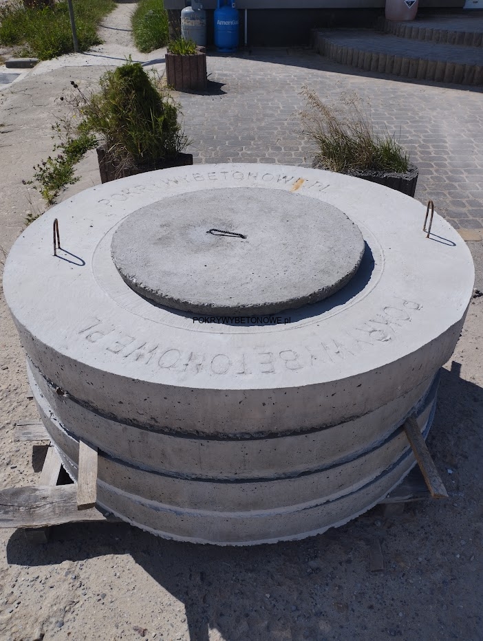Oferujemy pokrywę betonową, właz o średnicy 60 cm – idealne zabezpieczenie studzienki, zbiornika lub innego otworu. W komplecie znajduje się okrągły dekiel, umożliwiający wygodny dostęp. Pokrywa jest solidnie zbrojona, co zapewnia trwałość i bezpieczeństwo użytkowania.